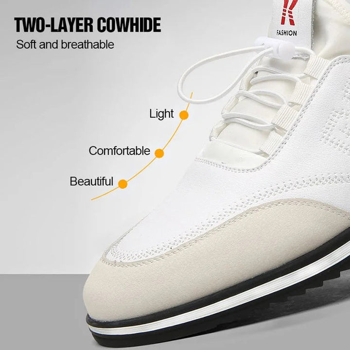 Function: Cushioned rubber sole, non-slip, 2 inches of extra height built into the shoe to help you increase your height, waterproof and durable, long-lasting wear. Made of top quality cowhide leather, soft and breathable, comfortable to wear, soft and flexible texture.