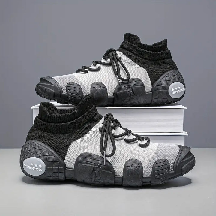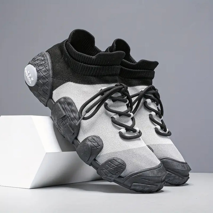 Crafted with breathable stretch-knit and reinforced canvas, this pair brings a bold blend of contrast and cushion straight to your daily moves. A sculpted outsole with grid-textured pods offers steady grip and bounce, giving every step standout support with visual bite.